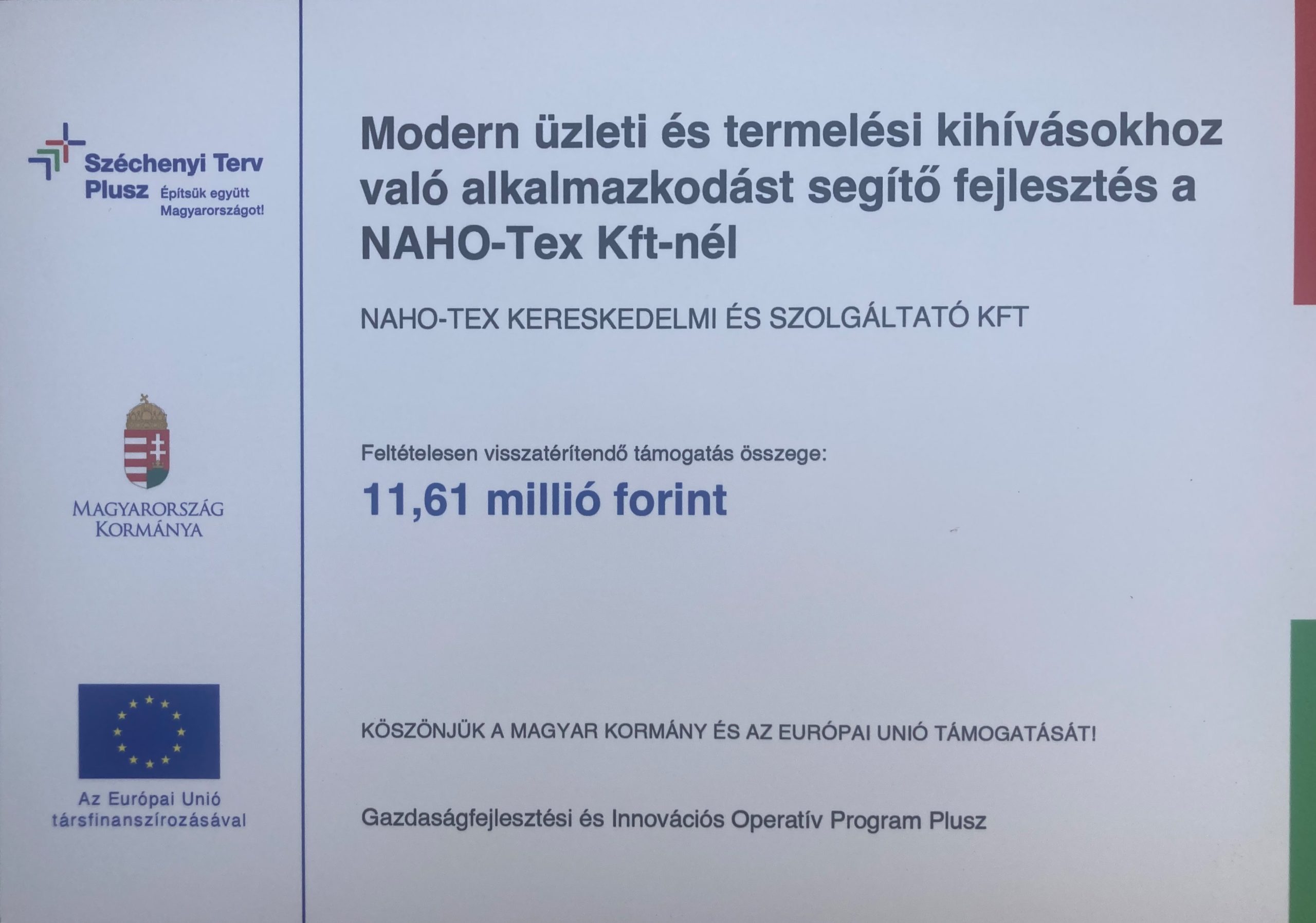 Modern üzleti és termelési kihívásokhoz való alkalmazkodást segítő fejlesztés a NAHO-Tex Kft-nél